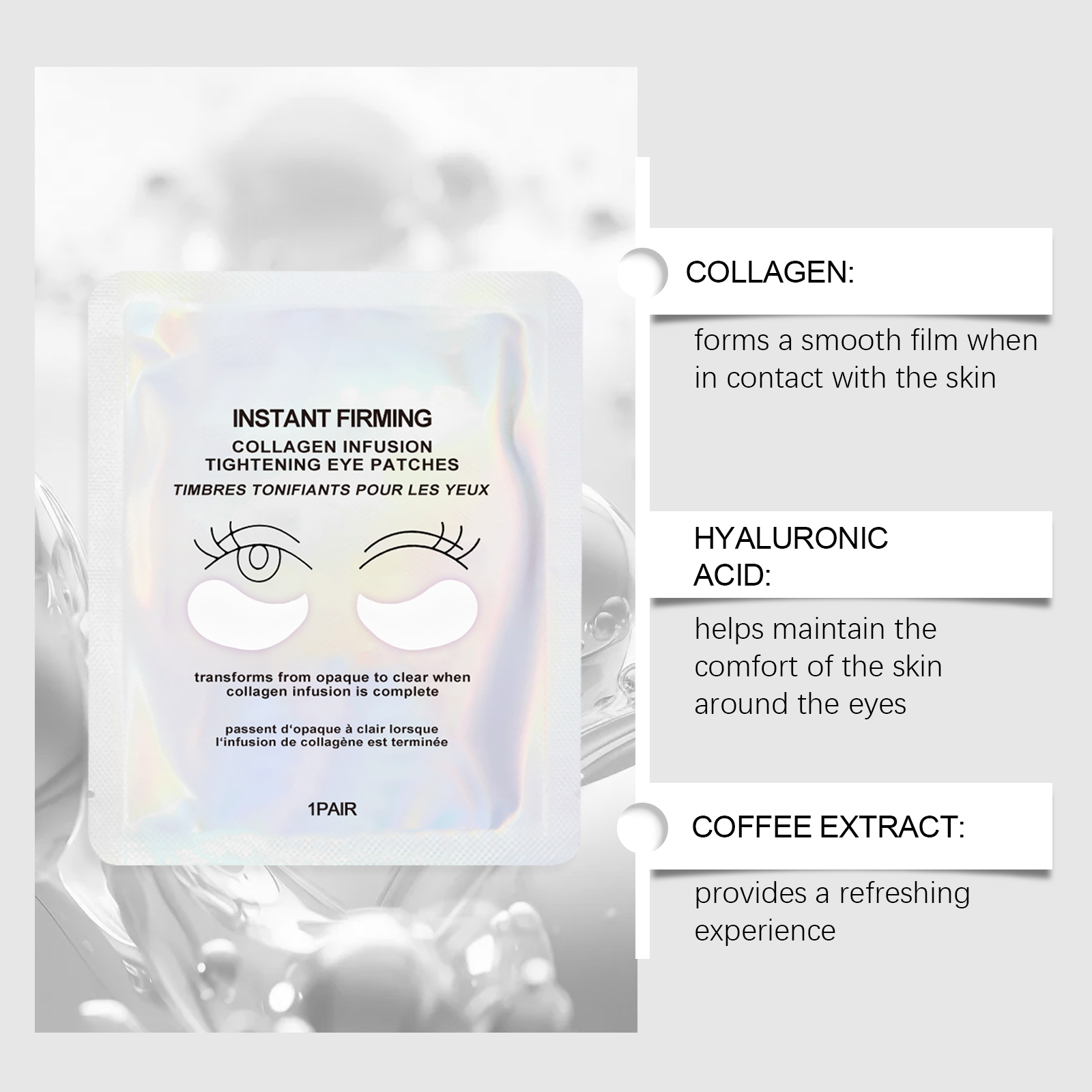 🌿 Natural plant extract compound: Centella asiatica+caffeine, reduces swelling and darkens, brightens the eye area