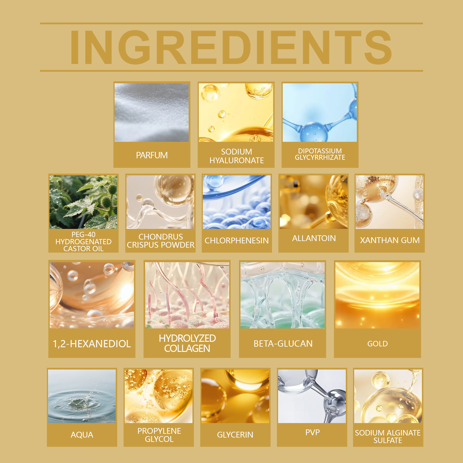 Our Golden Eye Mask uses Swiss nano encapsulation technology to combine 24K gold particles with 5D hyaluronic acid, achieving: