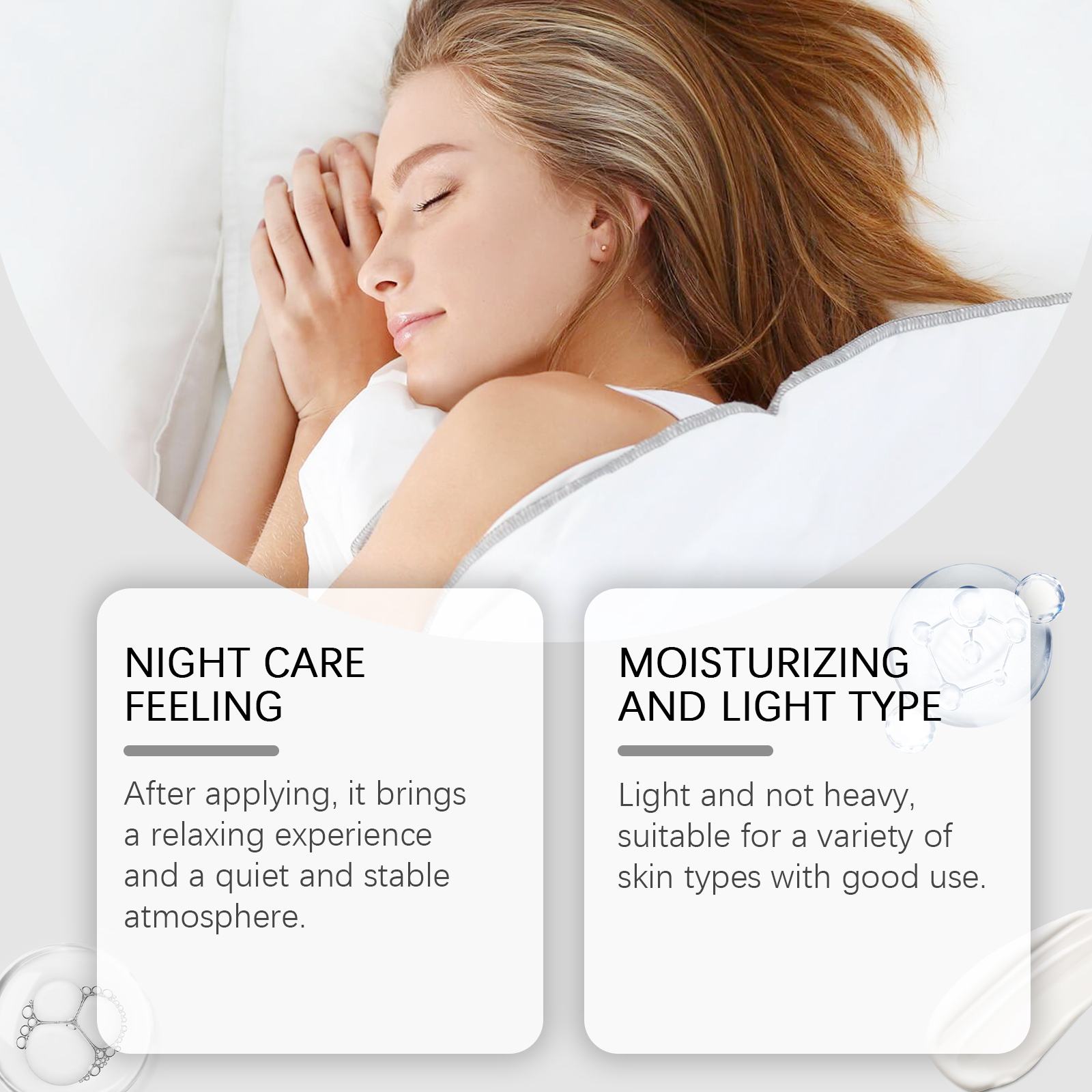 🌙 It is recommended to apply it 30 minutes before bedtime and avoid the eye area
